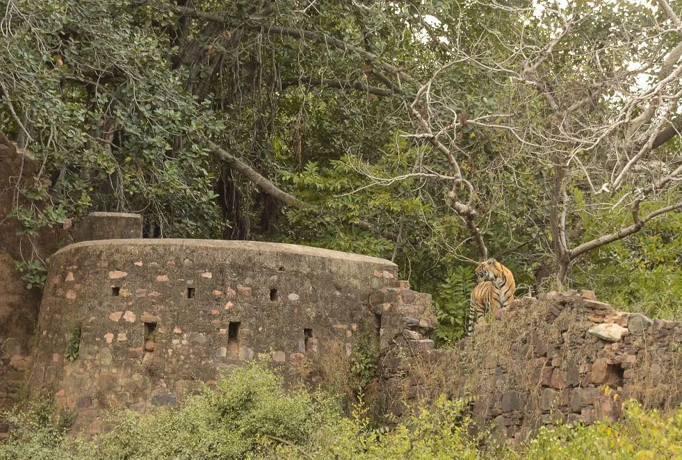 Sub adult Male wondering around ruins of the fort. Copyright Sharad Sharma (with permission)