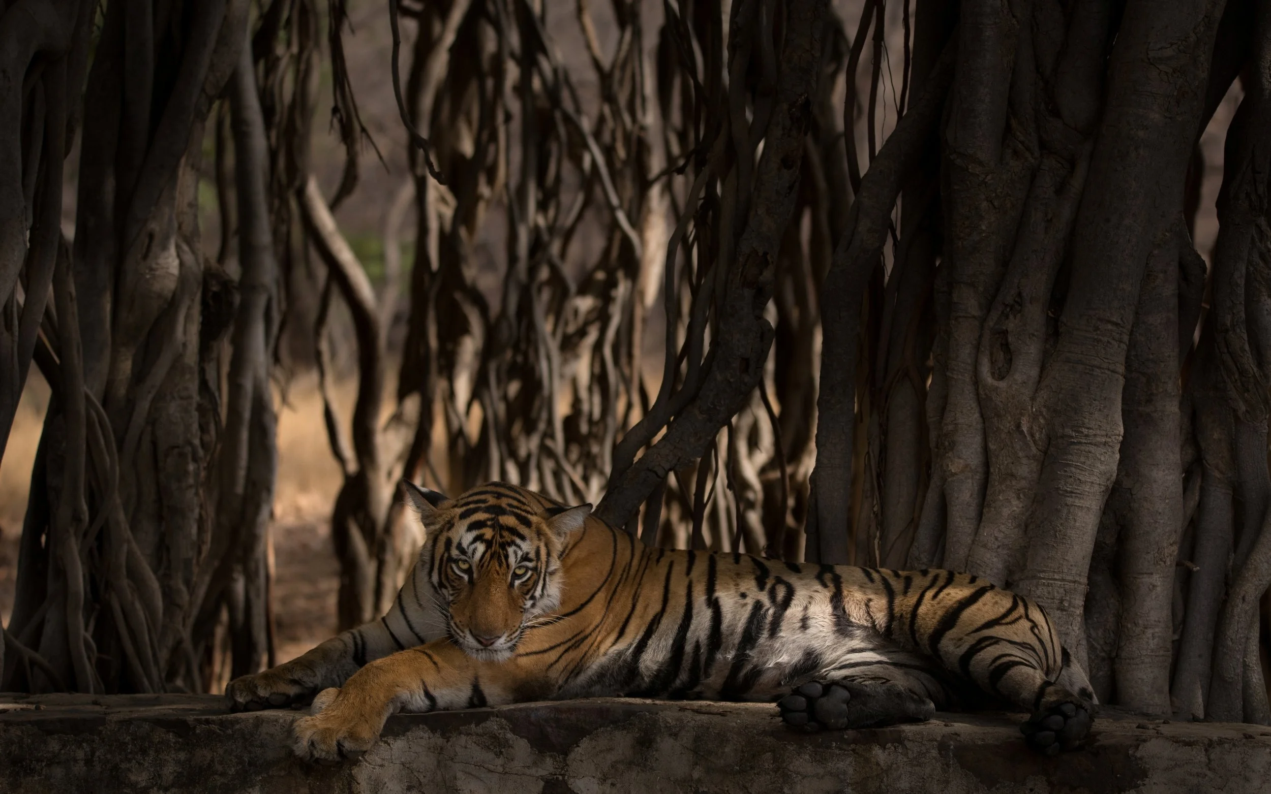 It seems she had passed it to her kins, how not to be shy with human beings. It is this special feature of the tigers which helped me connect faster. 17, 19, 24, 28, 39 these are not just the numbers for me anymore, they are individual tigers, each with a very particular nature. All of them being super OK with the tourism around. The quality of sighting in Ranthambhore is far better than anywhere else across India. Main reason for it being the extra dryness of the forests in summers which improves the visibility through the foliage and the super tolerant behavior of the tigers with the tourist vehicles. The overall terrain across the Aravali mountain ranges adds anxiety and thrill to the safari round. It gives us spectacular and unbelievable views. Big lakes, granite cliffs, ruins of royal monuments, presence of temple worshiped actively, few haunted and dark patches of the jungle are just few of the visual treats for the eyes. Presence of the herbivores and the apex predators in these backgrounds are just unforgettable moments and memories for the visitors here.