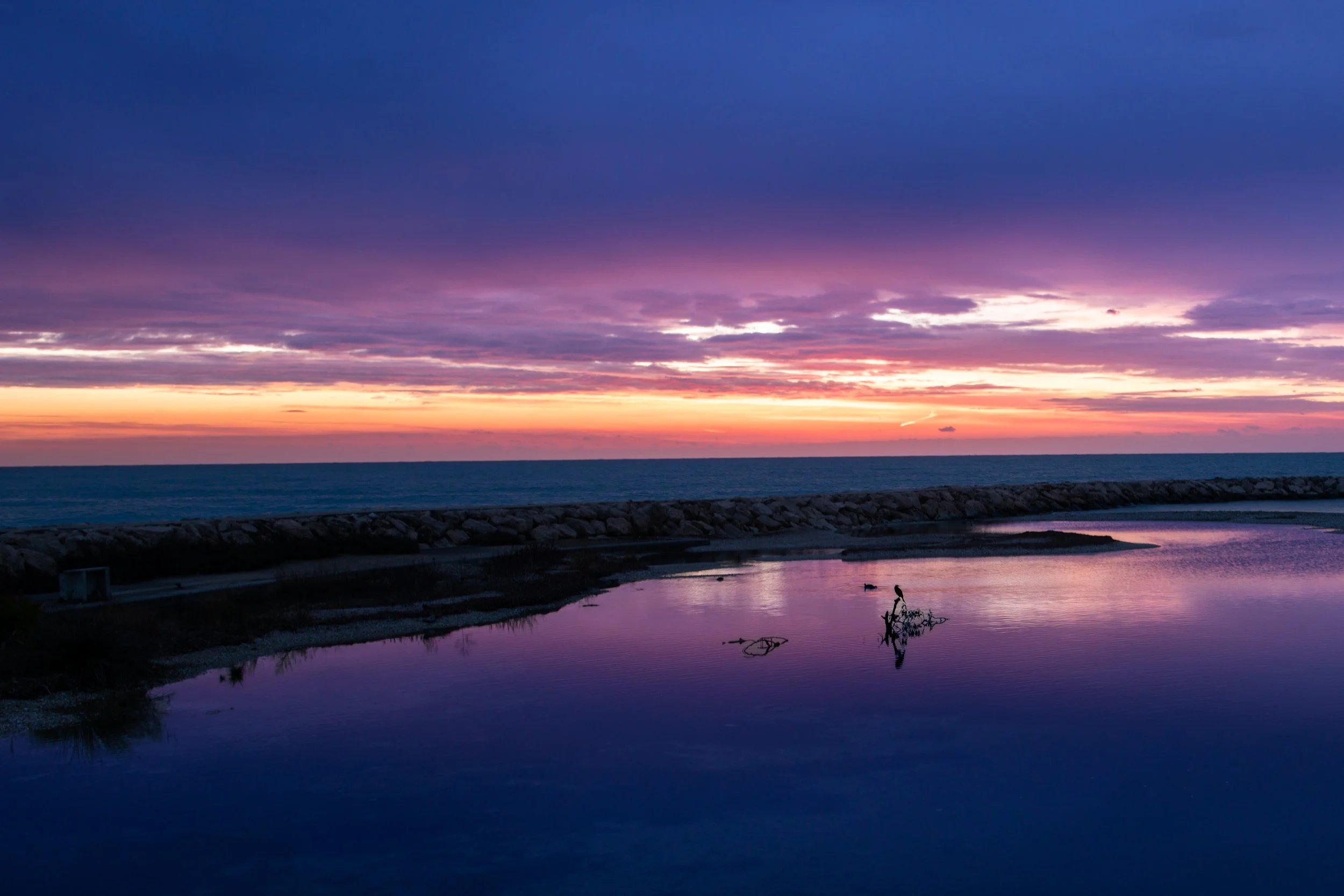Sunrise over still water — the day beginning in layers of colour and calm.