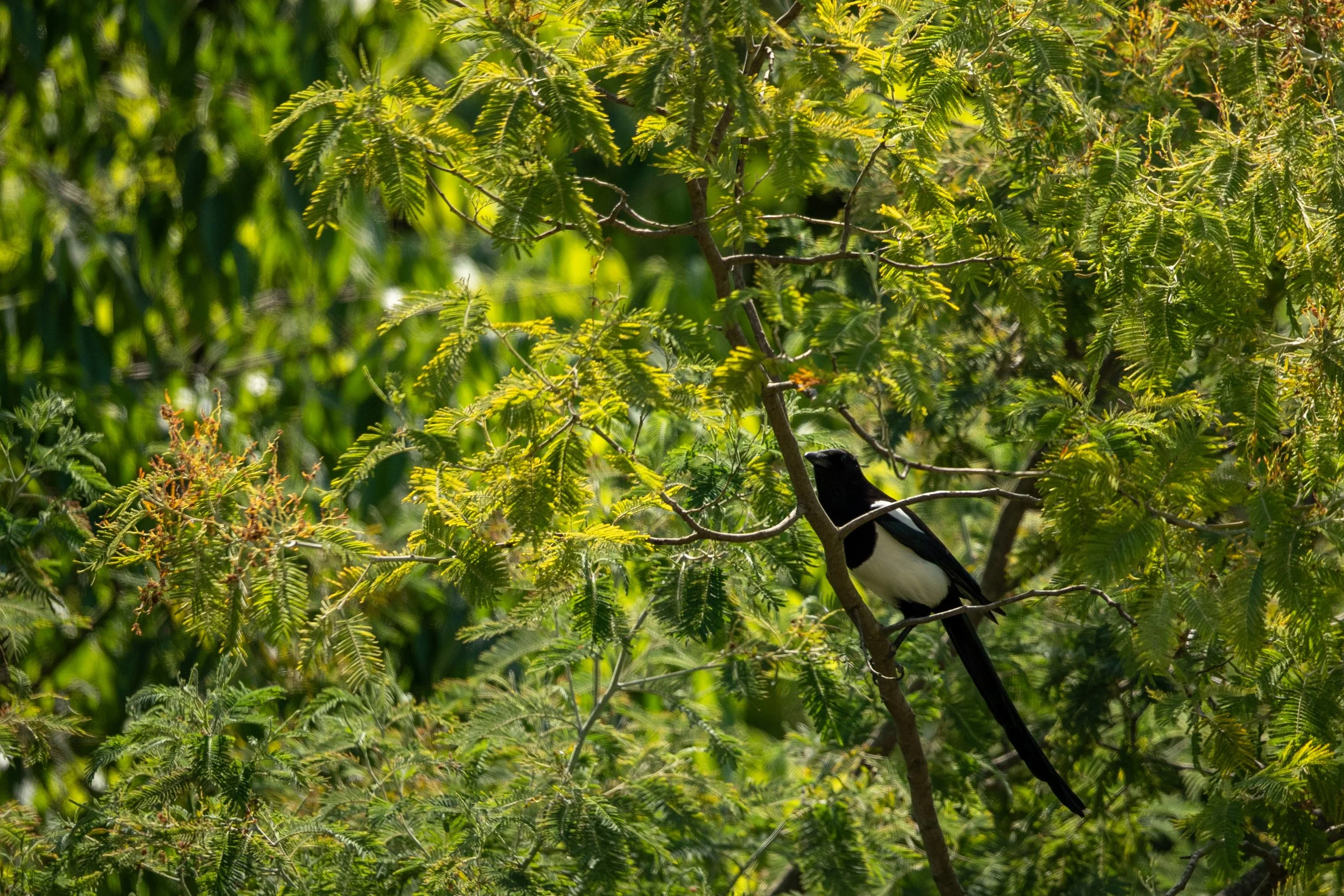 Magpie in the Mimosa: The sharp black and white of a Magpie framed by the feathery, vibrant green leaves of a Mimosa tree. Nature’s high-contrast palette in full display.