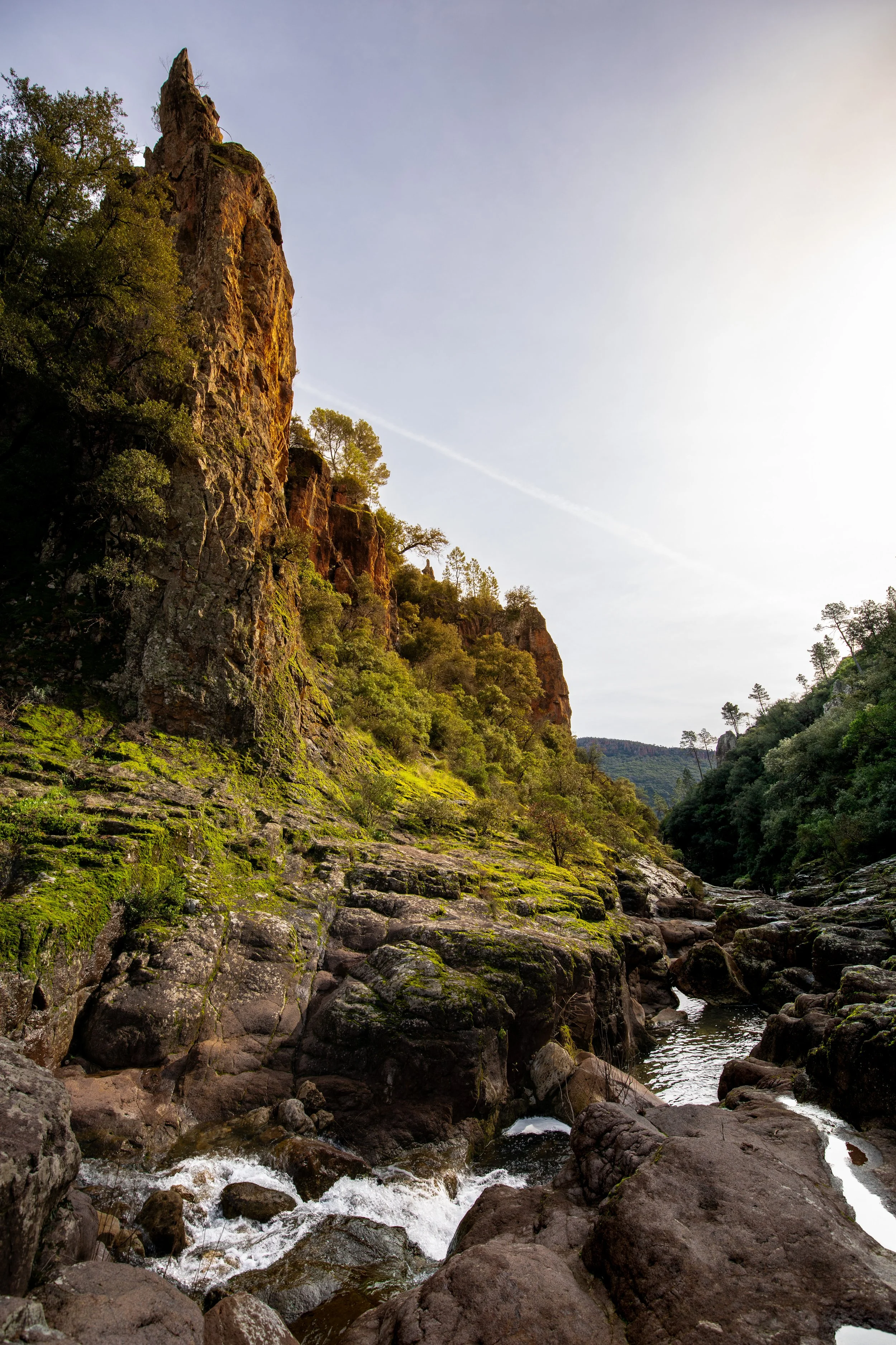 Nature’s Cathedral: Finding perspective among the giants. The way this jagged, moss-strewn spire reaches for the hazy sky creates a sense of ancient permanence. Following the stream as it cuts through the heavy stone is a reminder that even the softest elements can reshape the world if they are persistent enough.